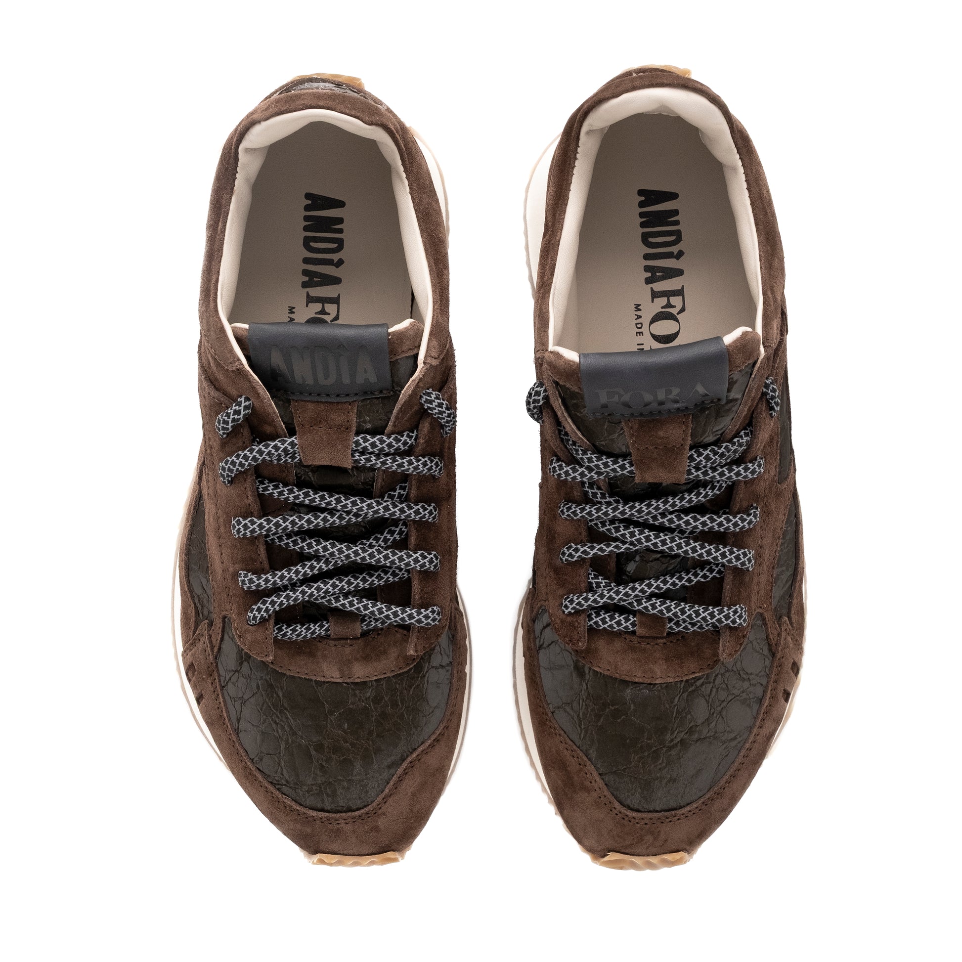 Le sneakers HOTY di Andia Fora, in morbido camoscio marrone, combinano eleganza sportiva e comfort quotidiano. Il design contemporaneo si abbina facilmente a look casual e urban, mentre la suola flessibile e leggera garantisce una calzata confortevole per tutto il giorno. Perfette per chi cerca uno stile raffinato senza rinunciare alla praticità e alla qualità Made in Italy.