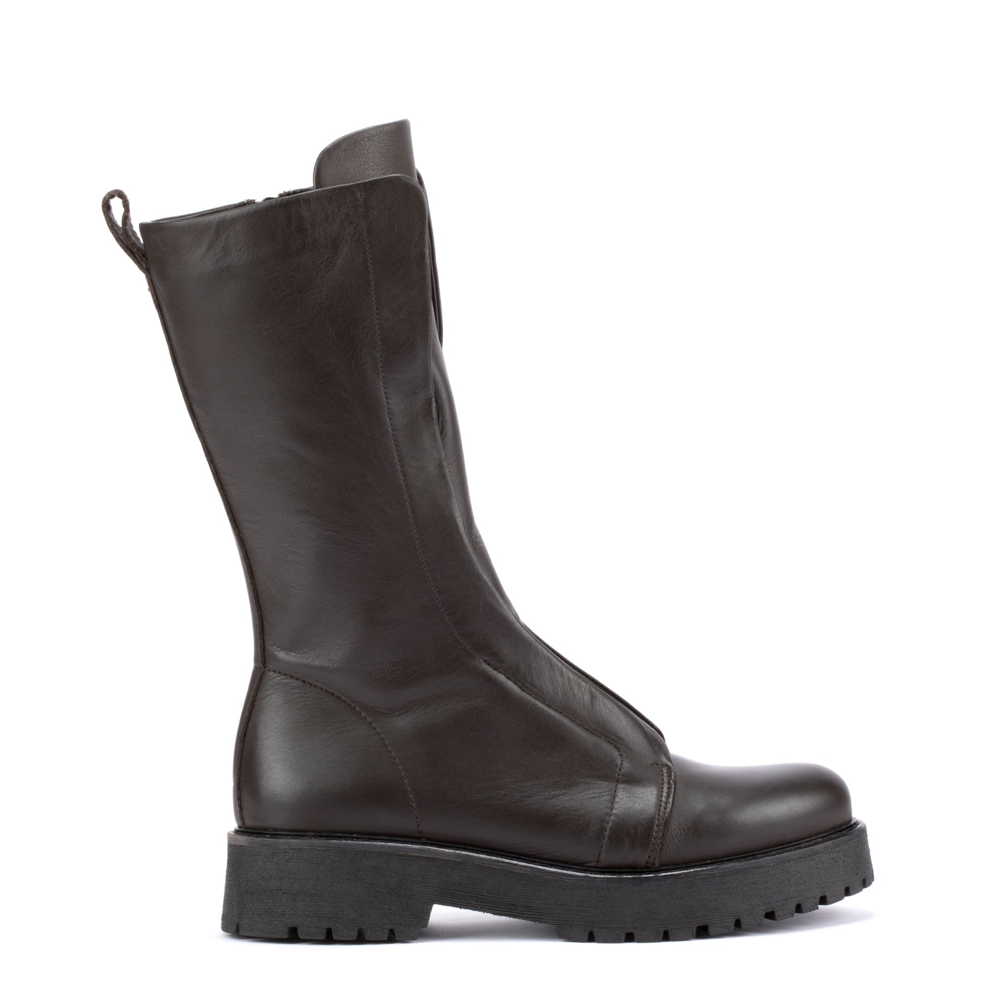 Stivali alti sotto il ginocchio in pelle marrone. Gli stivali Kuni nella versione alta sotto il ginocchio sono gli anfibi perfetti da indossare con vestiti e gonne. Se preferisci abbinarli ai pantaloni opta per modelli skinny o leggings. Indossa gli anfibi Kuni alti sotto il ginocchio con una gonna a campana e pullover basic per un look pratico e comodo sia per il pomeriggio che per la sera.