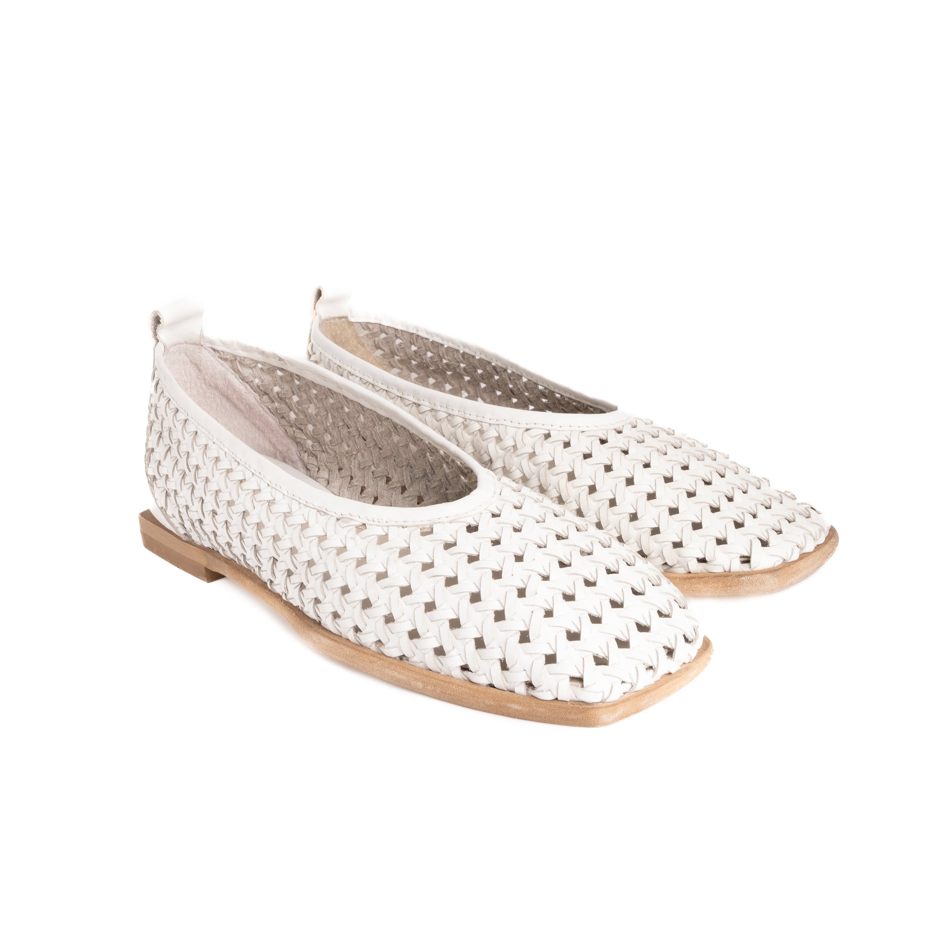 Queste ballerine Patrizia Bonfanti esprimono una femminilità contemporanea attraverso una raffinata tomaia in pelle traforata, realizzata artigianalmente per garantire leggerezza, traspirabilità e comfort.
