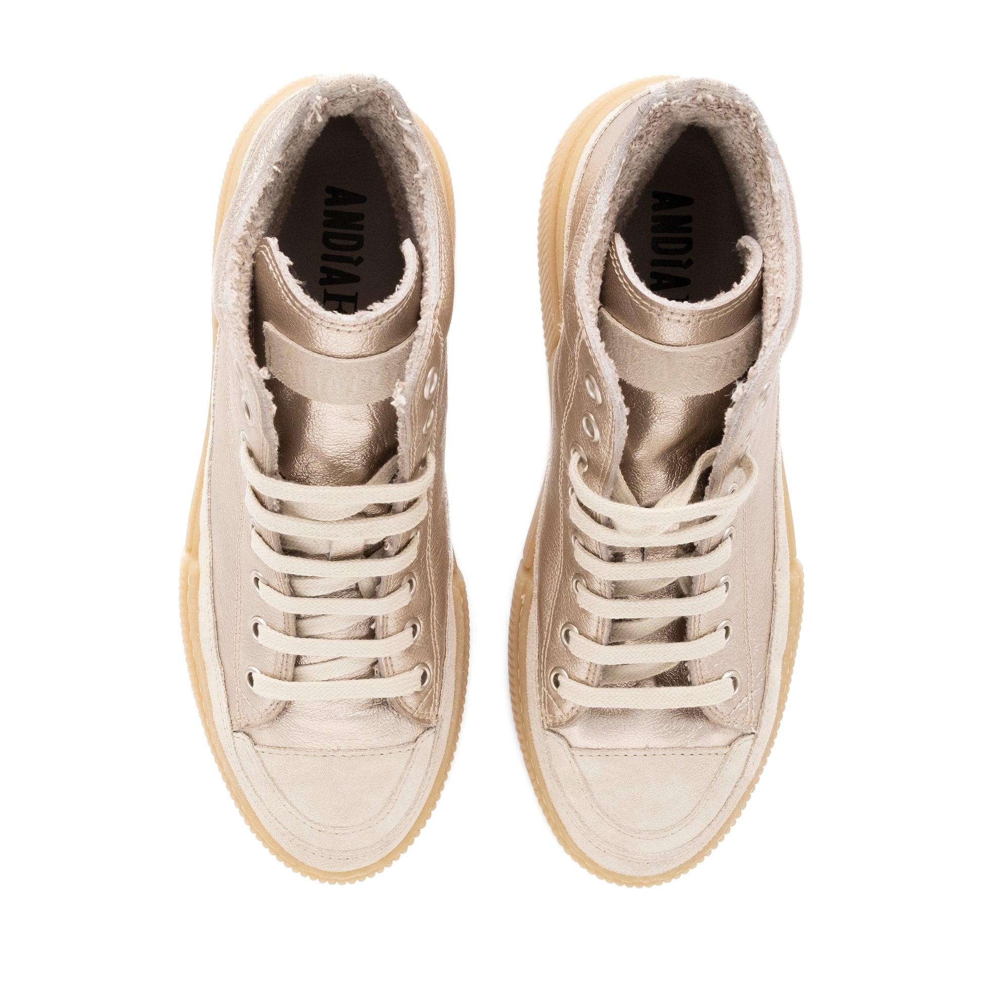 Discover the HORO sneakers in cream suede, an elegant and versatile women's model, perfect to complete every look with style and sophistication. Made from high-quality leather, these shoes stand out for their rounded toe and lace-up closure, ensuring comfort and a perfect fit around the ankle. The understated and feminine design makes them ideal for both casual outfits and more refined occasions, adding a touch of class and charm to any attire.