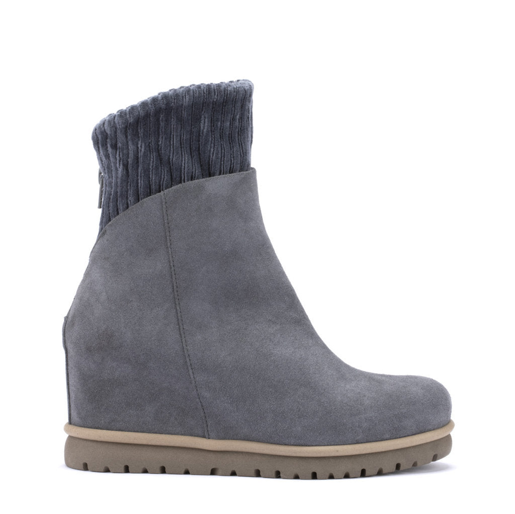 The JUN ankle boots from Patrizia Bonfanti are crafted from high-quality Italian leather, a hallmark of the brand. The round-toe design features a unique two-tone notched sole and an elasticated band made of ribbed velvety fabric, providing a soft, comfortable fit around the ankle.