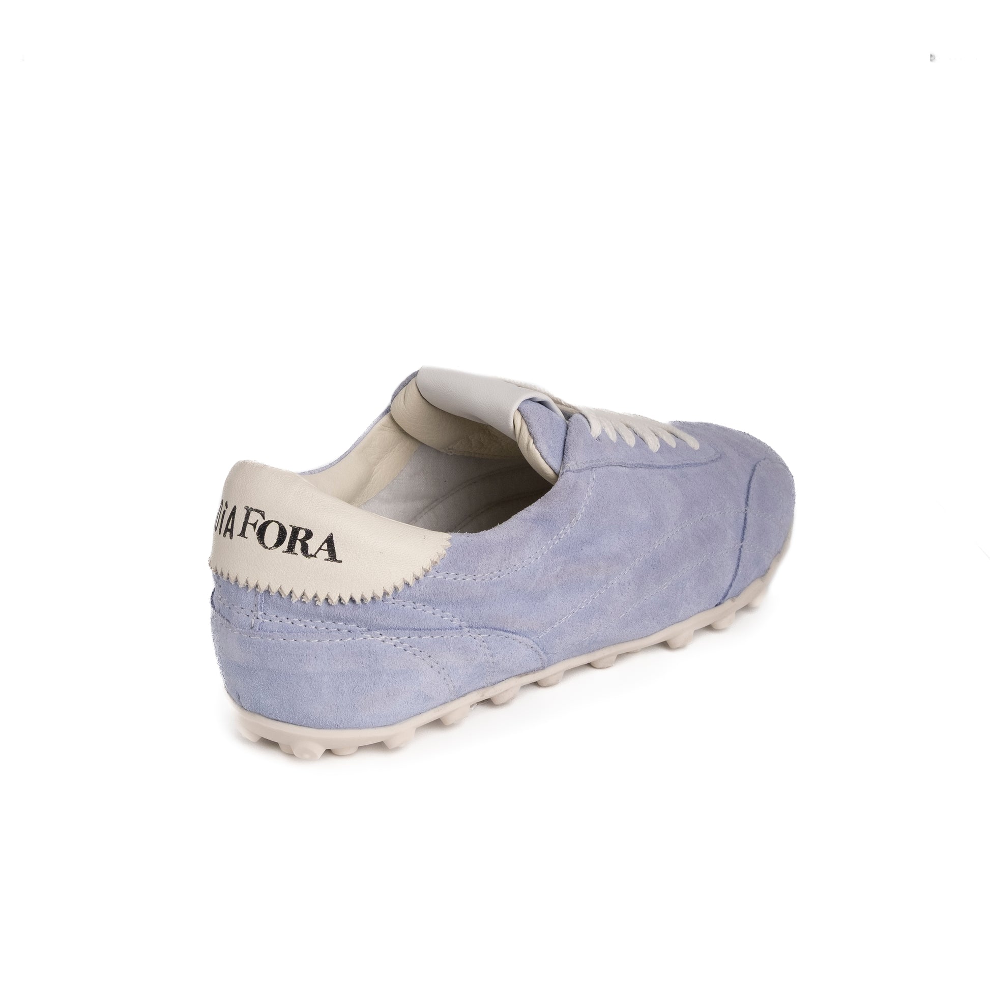 Sporty elegance with a refined character: this sky-blue suede sneaker interprets contemporary casual style with lightness and style. The soft suede upper stands out for its velvety texture and delicate powder blue hue, luminous yet discreet, perfect for spring and summer.