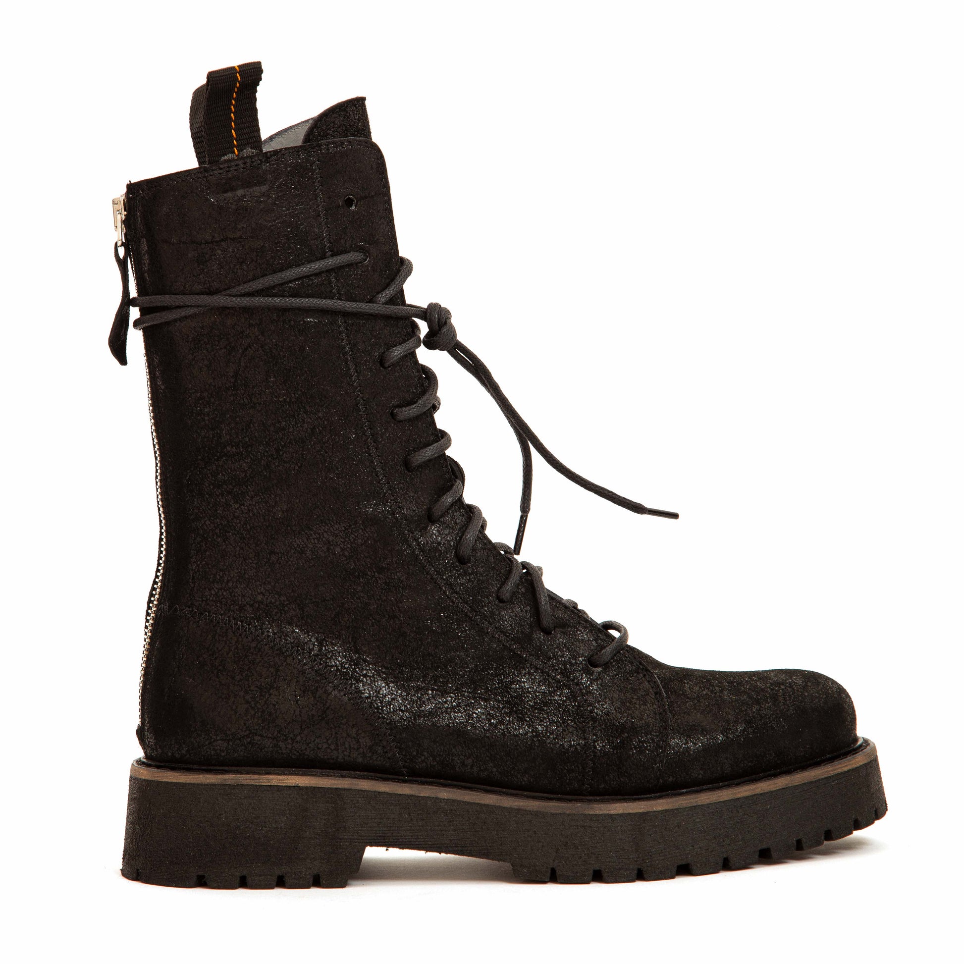 Scorpio are below the knee high boots in black nubuck embellished with a mini belt with metal buckle.